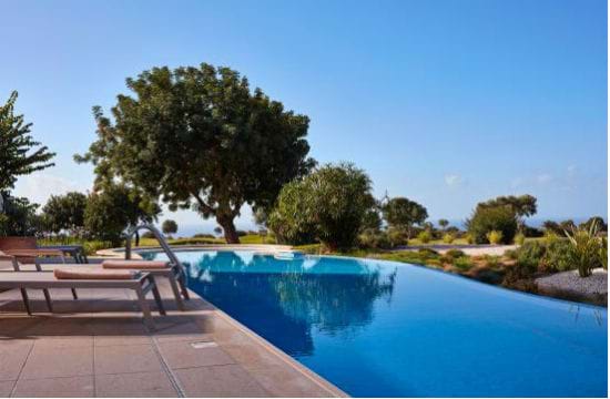 With balcony or terrace, Private Pool, golf and sea view, spacious luxury bathrooms with separate walk in shower and bath, bathrobes & slippers, mini bar (refilling upon request - extra charge), in room safe, hairdryer, air conditioning (individually controlled), satellite TV and pay per view movies, direct dial dual line data port telephones with voice mail, 24 hour laundry service, complimentary tea and coffee making facilities (replenished daily), WiFi free of charge in all rooms, bluetooth enable station, iron and ironing board, pillow menu (extra charge). 33m2