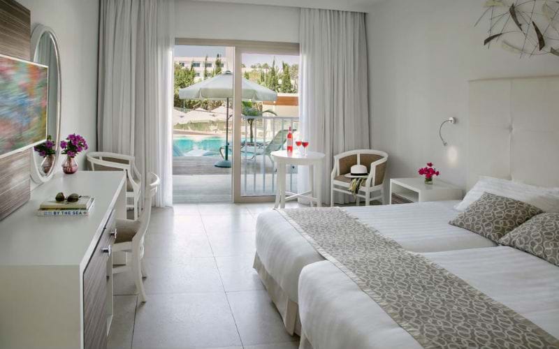 With the beach just a few meters away and with your own personal access, our five Junior Suites will make your stay at Asterias Beach Hotel unforgettable. The suites, decorated in the shades of blue, white and earthly colours, have a room and their own living room while offering all the comforts you might need in order for you to enjoy your vacation. Each room's veranda is also equiped with your own private Jacuzzi, two sun loungers, an umbrella and two submersible waterbeds. In these fully-equipped rooms, with all the comforts, you will enjoy the direct access to the swimmimg pool from your room's terrace!
